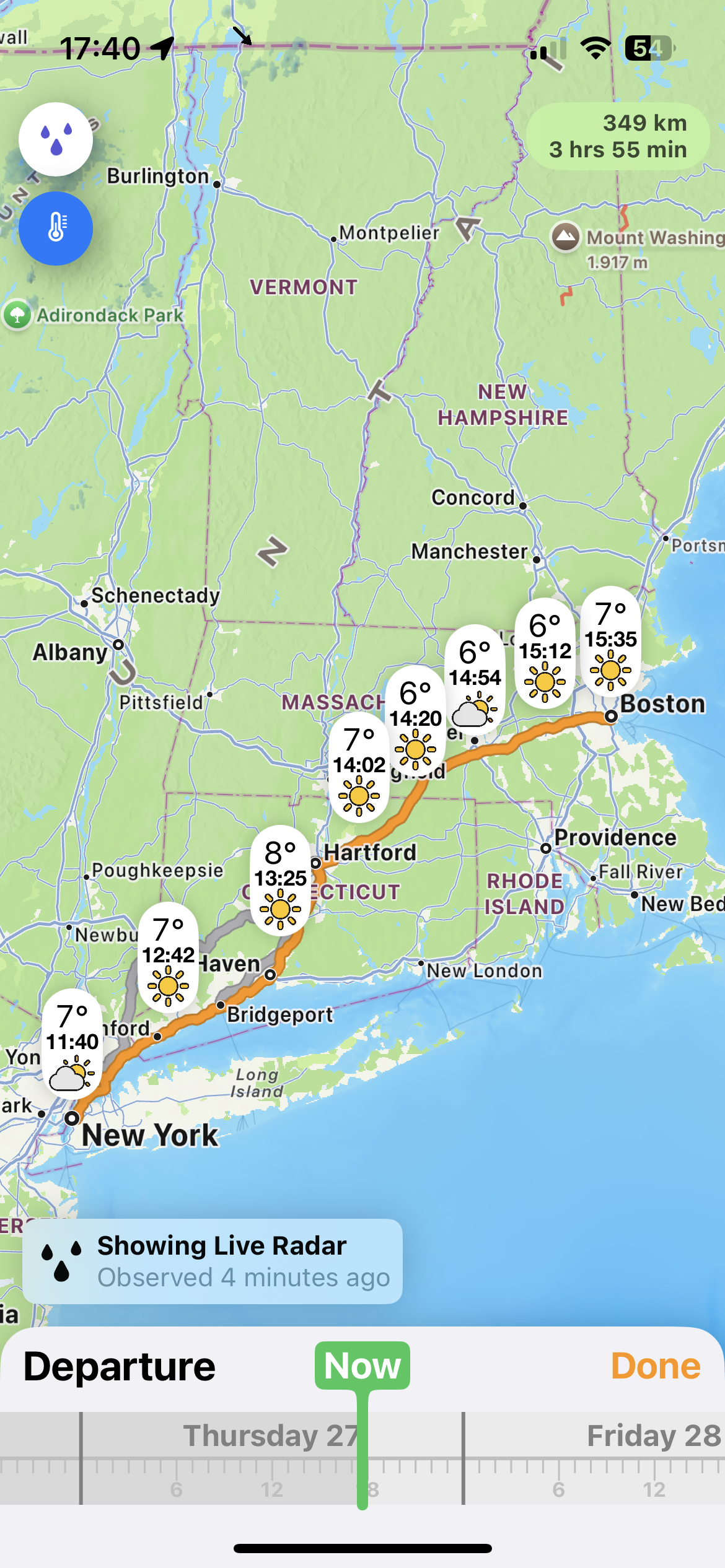 • Live snow and rain radar tied to your actual route